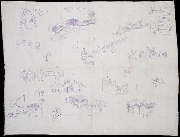 Afbeelding: Linnen Lap met voorstellingen uit Kamp Solo. Bron: Website Het Geheugen.